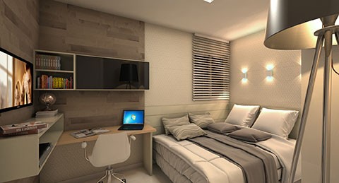 *Plantas ilustrativas com sugestões de decoração. Os móveis e equipamentos têm dimensões comerciais e não fazem parte do contrato. As medidas são internas e de face a face das paredes, sujeitas a pequenas variações de acordo com exigências técnicas e /ou acabamentos. O imóvel será entregue conforme o manual descritivo.